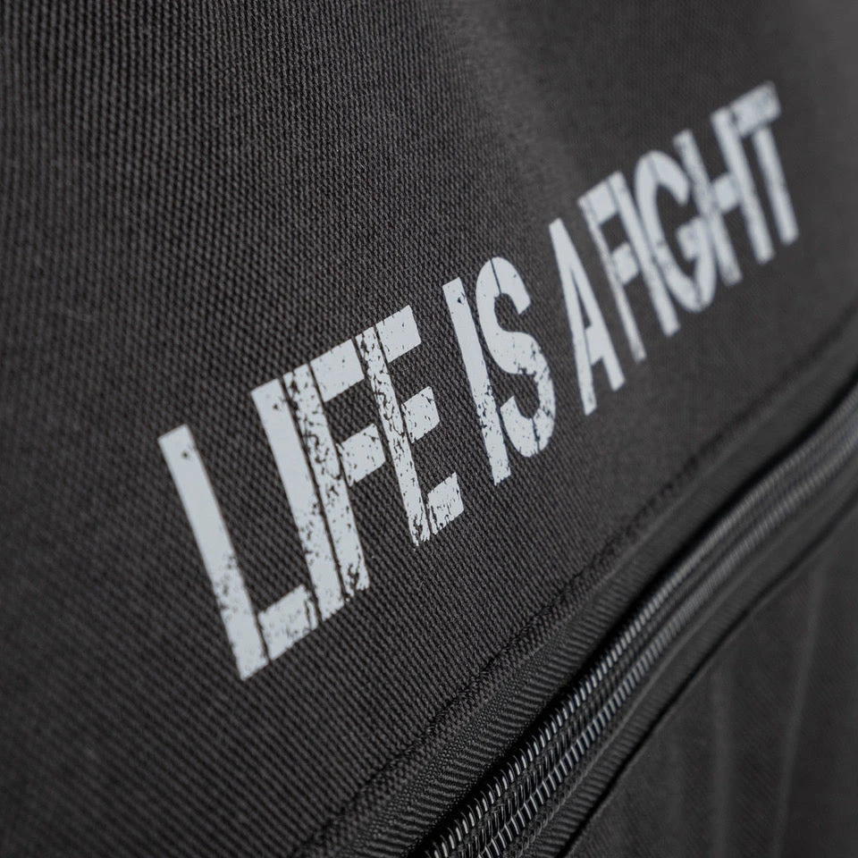 The Fighter universal sports bag is made in the Czech Republic. The material is waterproof polyester. The bag has two side pockets on each side. You can find more pockets inside. The bag can be carried in the hand, over the shoulder and as a backpack. The back straps are in a hidden pocket at the bottom of the bag. The bottom of the bag is padded. There is enough room for carrying all necessary equipment for your training.Â