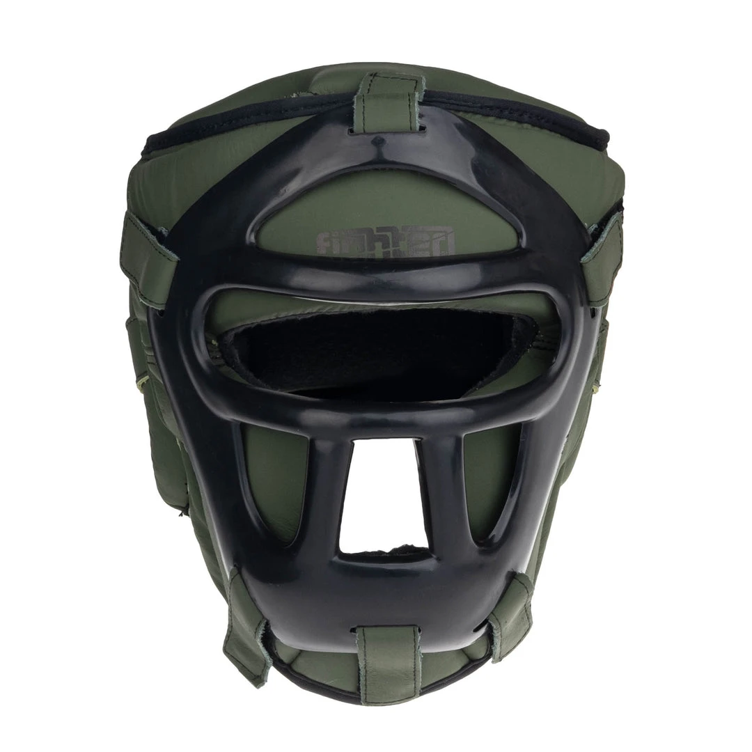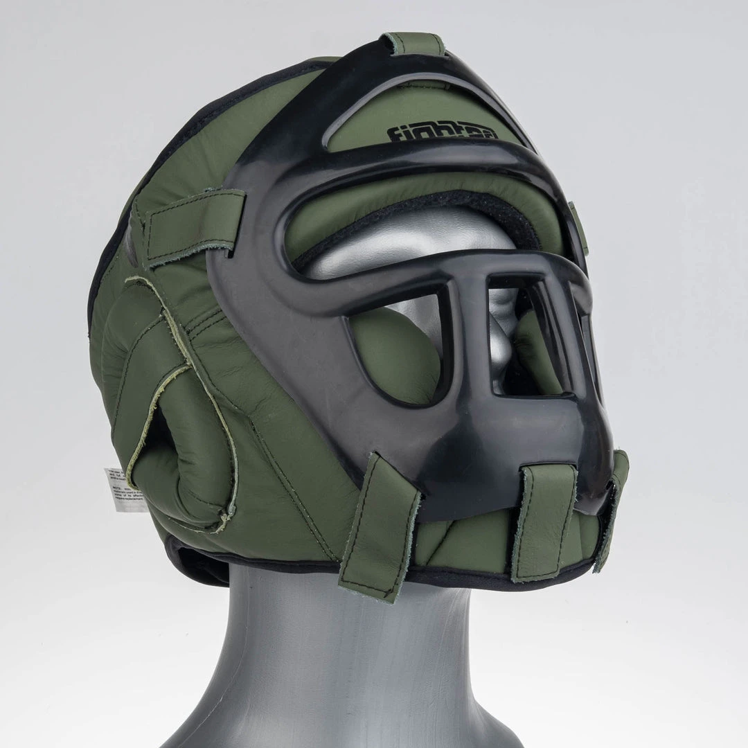 This headguard is made of leather, and has added protection for the cheekbones and chin. Optimal velcro fastener that can be set by head size.