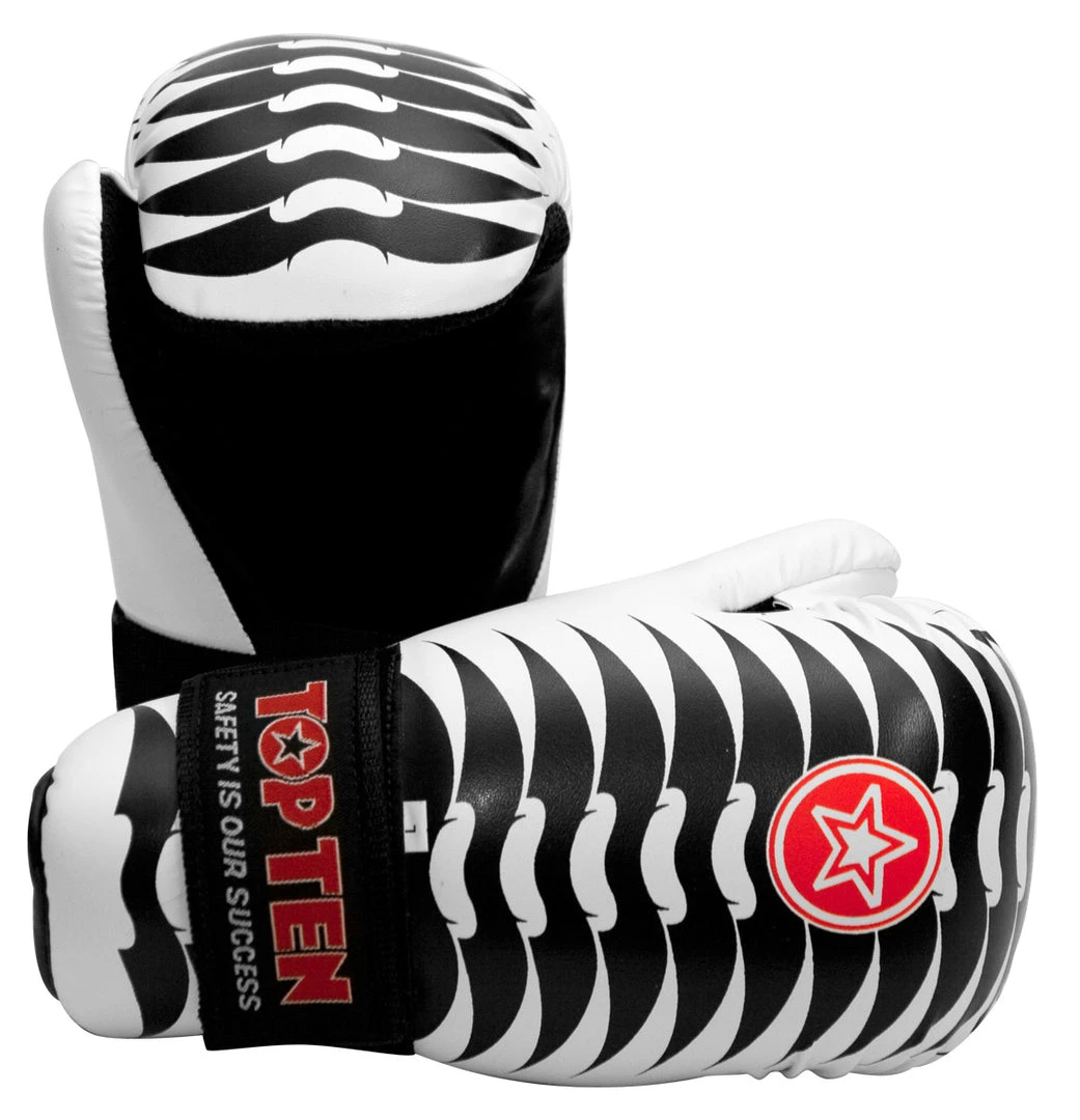 These gloves are specially developed for point-fighting and taekwondo ITF. A very light glove with pre-shaped padding.