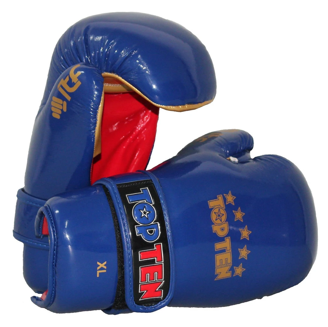 The Top Ten open gloves are specially developed for taekwondo ITF. A very light glove with pre-shaped padding.