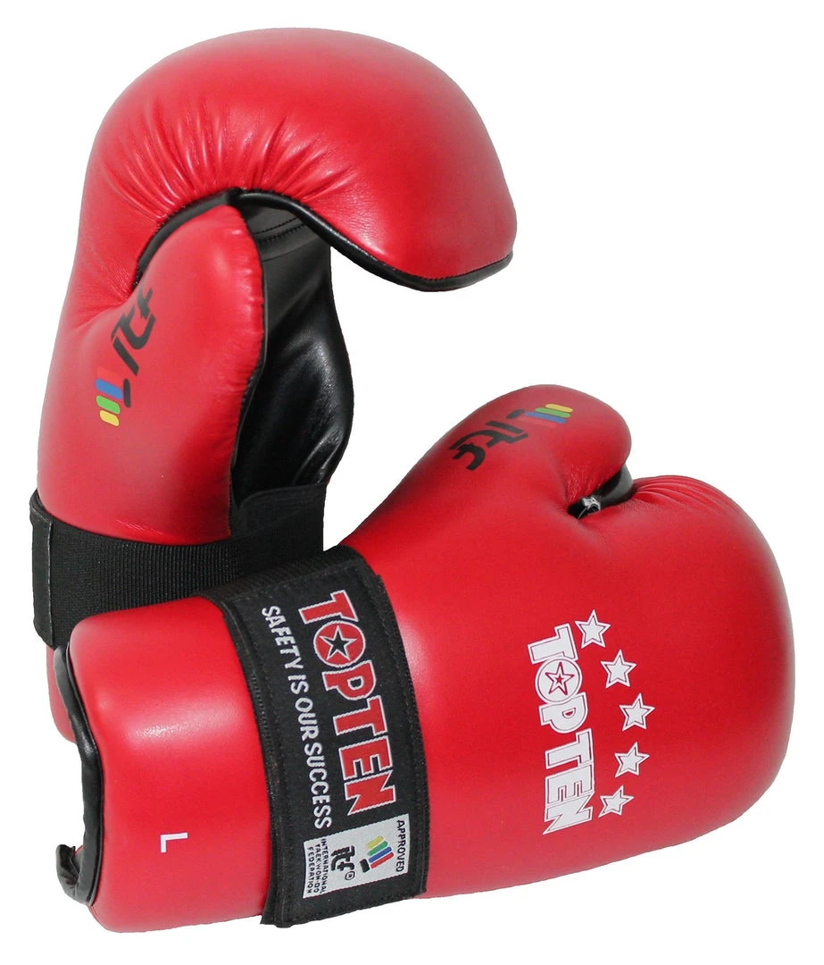 The official ITF Pointfighter gloves made of durable Nubuk artificial leather. A very light glove with a preshaped padding. Strap velcro closure.