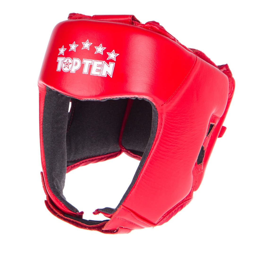The technological Know How from existing TOP TEN products was used to develop a head guard made of leather, as the demand for a TOP TEN leather head guard has been overwhelming. A one-piece, molded and shaped, inner padding is covered with leather.