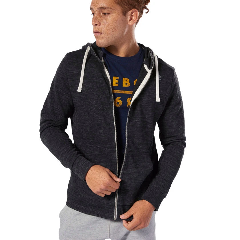 Dress up while dressing down. This men’s full-zip hoodie has a soft French terry build and the striking look of textured marble mélange. Ribbed inserts at the hem round out the sweatshirt’s modern look.