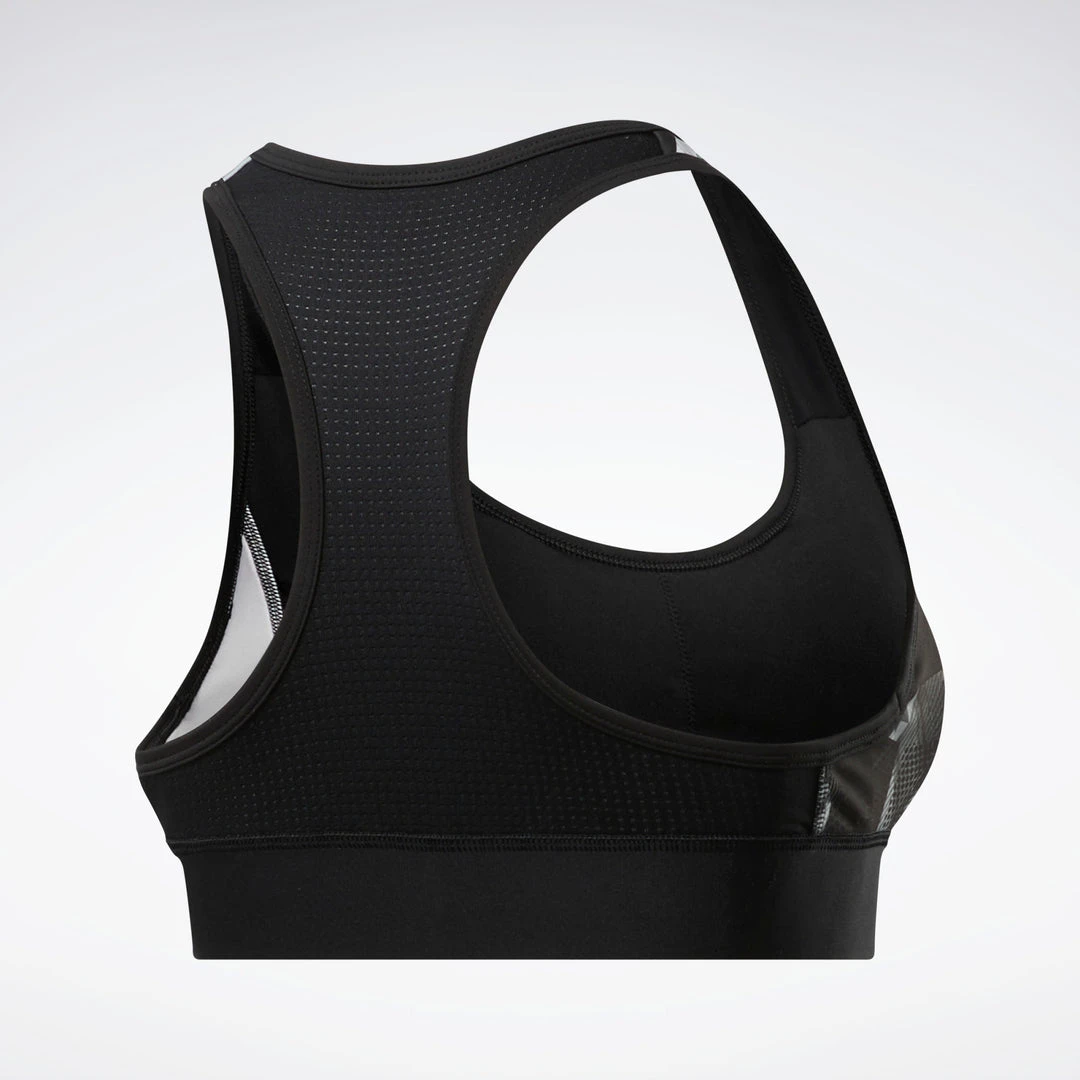 Work up a sweat in this light-support sports bra. The wide band and fitted fit keep you comfortable throughout your workout. Speedwick fabric helps you stay dry, and an allover graphic adds extra style.