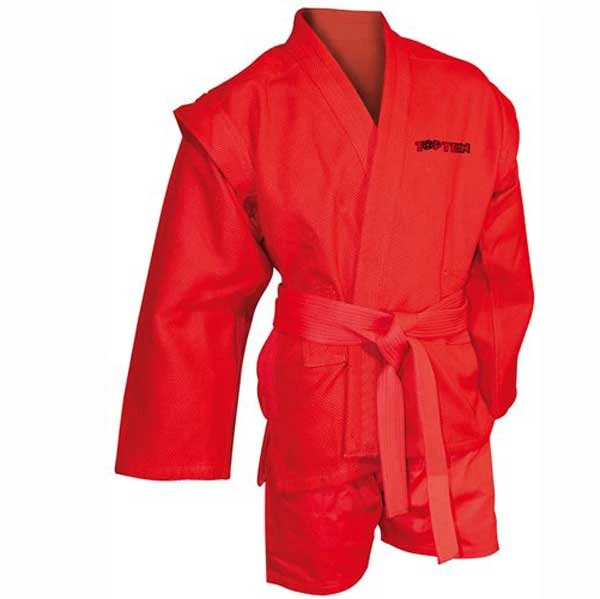 High quality produced Sambo jacket with rice grain weaving. Strong and stiff jacket collar, extra layer of material at the waist, approx. 530g . Sambo Shorts made of 100% cotton.