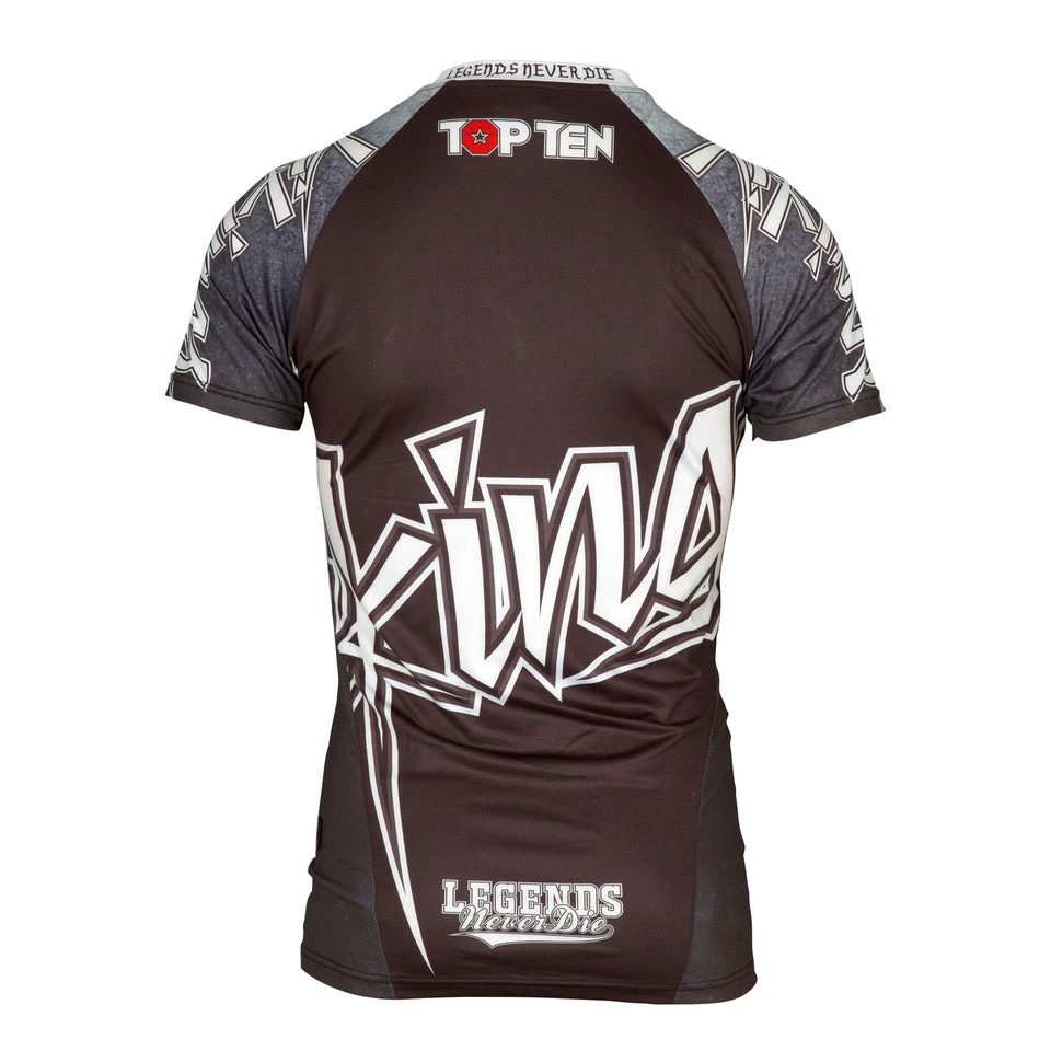 Great combination of lycra spandex and stretch polyester that fits the torso perfectly and helps to protect against rash burns and mat scrapes during training. Sublimated print! The transfer of the motif occurs by sublimation, a high-quality print process in which the color evaporates (sublimates) into the textile fiber. This print is highly resistant to environmental influences and UV radiation, meanwhile, the breathability of functional clothing is not affected.