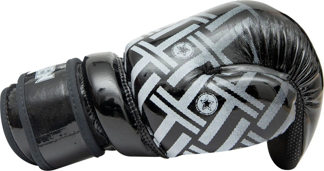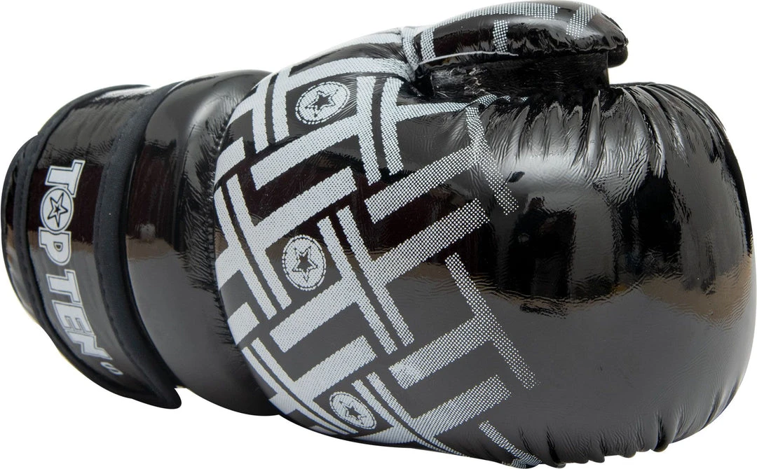 With the Pointfighter “Glossy Block PRISM” from TOP TEN, you can complement your look from the popular PRISM series. The proven advantages of our point fighters are also used in the “Glossy Block PRISM.” An approx. 2 cm wide protective ring in the wrist area provides more stability and increased safety. The padding is made of compressed PPS foam for a flowing impulse pick-up over the entire surface. The sturdy cover made of synthetic leather is extremely resistant, and all prints are abrasion-resistant, so that your “Glossy Block PRISM” Pointfighters impress with their long-lasting shine. A sewn-on, closed thumb, an ergonomic grip line, and a strong hook and loop fastening system round off the Pointfighter’s safety package.