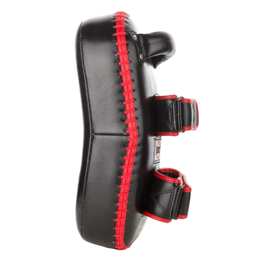 Multi-layered pads provide superior shock-absorbing capabilities and superb protection from all kicks, strikes and punches. Convenient riveted back handle with two hookand- loop arm security straps.